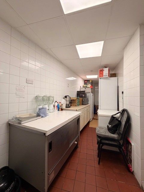 Preparation Area with a wide range of equipment including 2 fryers, 2 grills, Bain Marie, industrial microwave and heated cabinet.